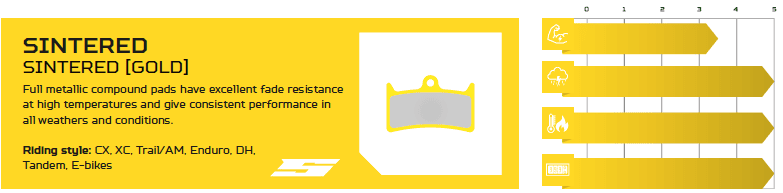En sintered bremsekloss er mer slitesterk enn den organiske bremseklossen, og fungerer best når den har fått temperatur i seg.