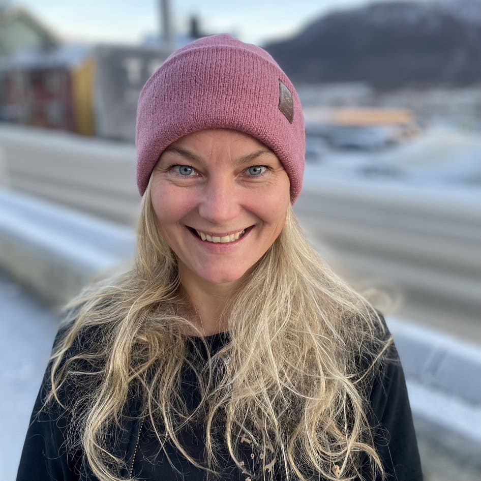 – Rosa er min favorittfarge så det er ikke tilfeldig at vi har bestilt inn luer og halser i rosa. Jeg er kjempefornøyd med den lange strikkeluen. Den er ekstremt varm og kjempefin på.