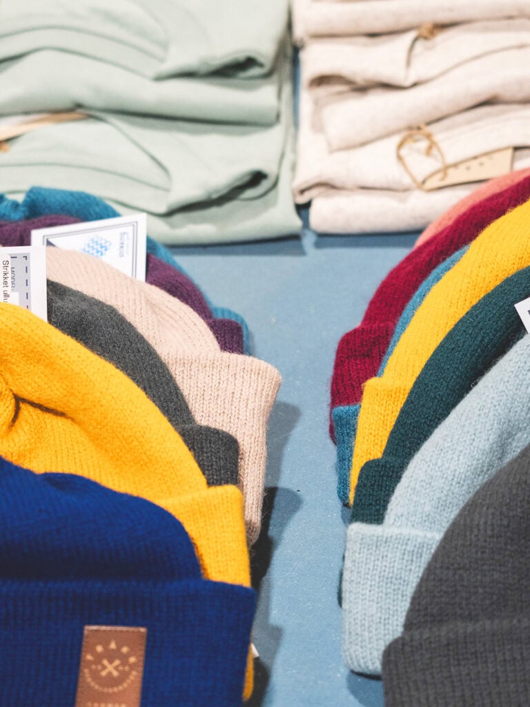 Rannveig strikker utrolig flotte luer av norsk lammeull fra Rauma. Norsk ull er et av verdens mest miljøvennlige fibre og plaggene får den perfekte balansen mellom funksjonalitet og komfort, de blir lette, varme og slitesterke, og mykere jo mer du bruker de. Vi har en lang modell og en kort modell, Fisherman, i mange forskjellige farger.